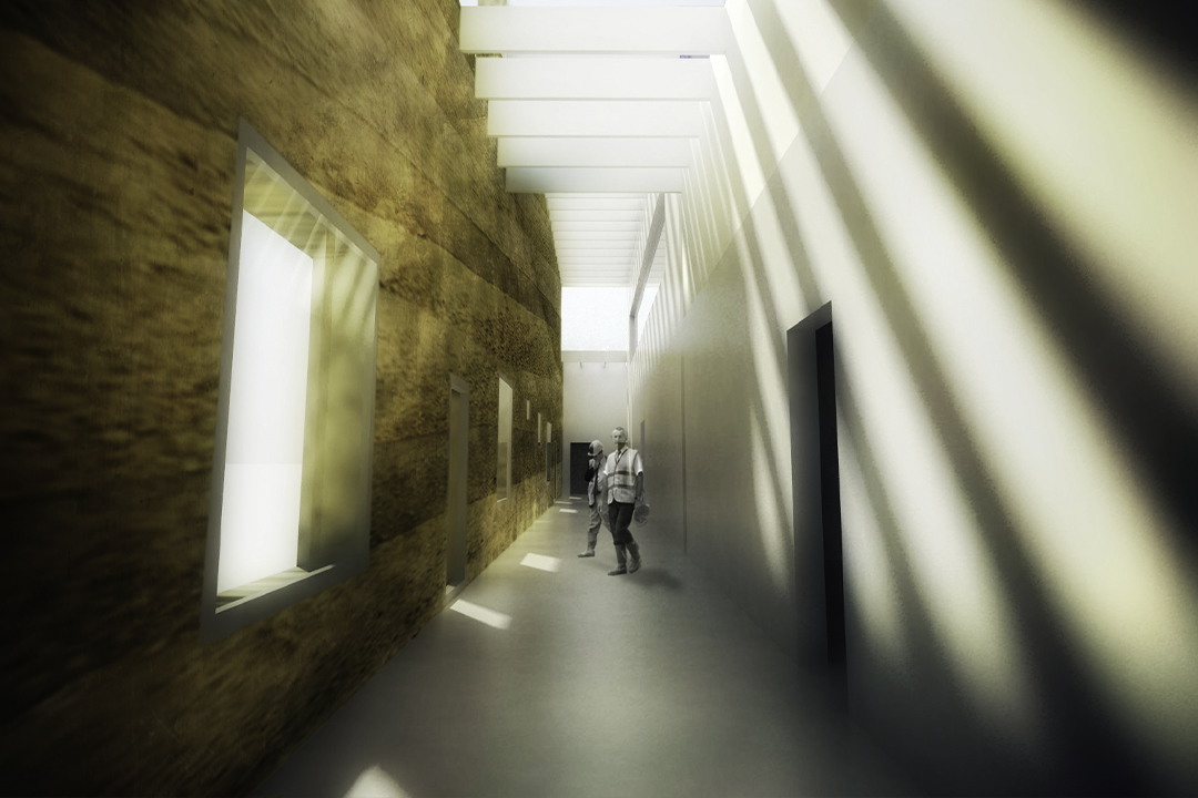 Chaque automobiliste est à même d’apprécier ce vaste édifice de terre qui borde la route. Massif, le centre se place en vue. Il s’inscrit dans cette prise de conscience des contemporains de la nécessité d’être respectueux et modeste face à l’environnement mais ce n’est pas pour autant qu’il doit rester discret et banal, bien au contraire il s’exprime, sans retenue. Le parti pris à la fois idéologique et constructif nous conduis à la mise en valeur du pisé dans sa dimension symbolique, elle est une représentation tangible et visible de l’intérêt écologique développé autour de l’édifice mais également dans sa dimension technique puisque son utilisation réalise la synthèse des problématiques à la fois économiques, climatiques et contextuelles.